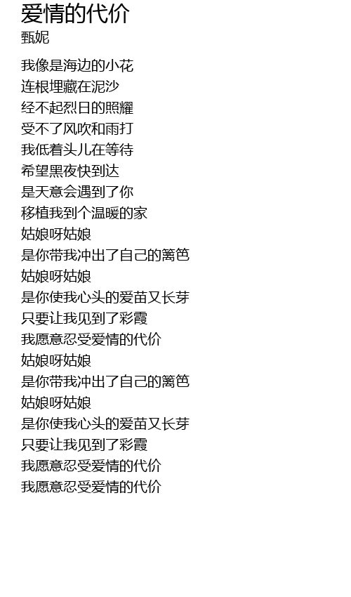 | [03:06.00] | 我愿意忍受爱情的代价 |