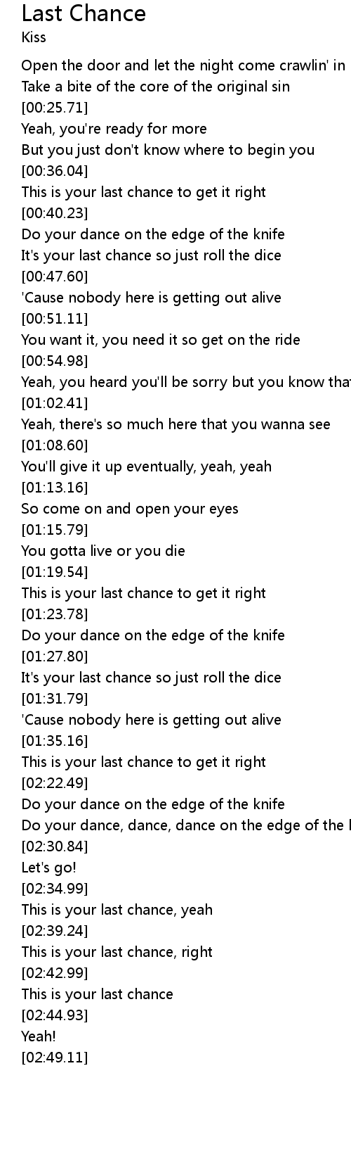 | [02:26.77] | Do your dance, dance, dance on the edge of the knife |