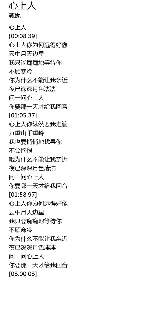 | [02:13.10] | 心上人你为何远得好像 |