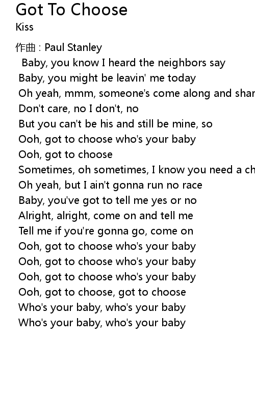 | Ooh, got to choose who' s your baby | |