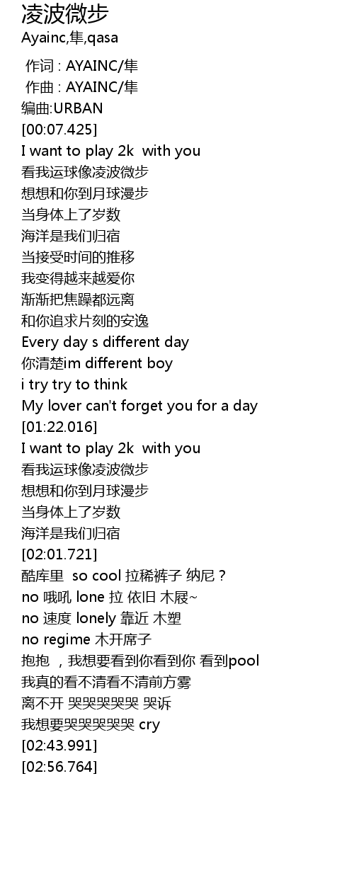 | [02:14.167] | no 速度 lonely 靠近 木塑 |