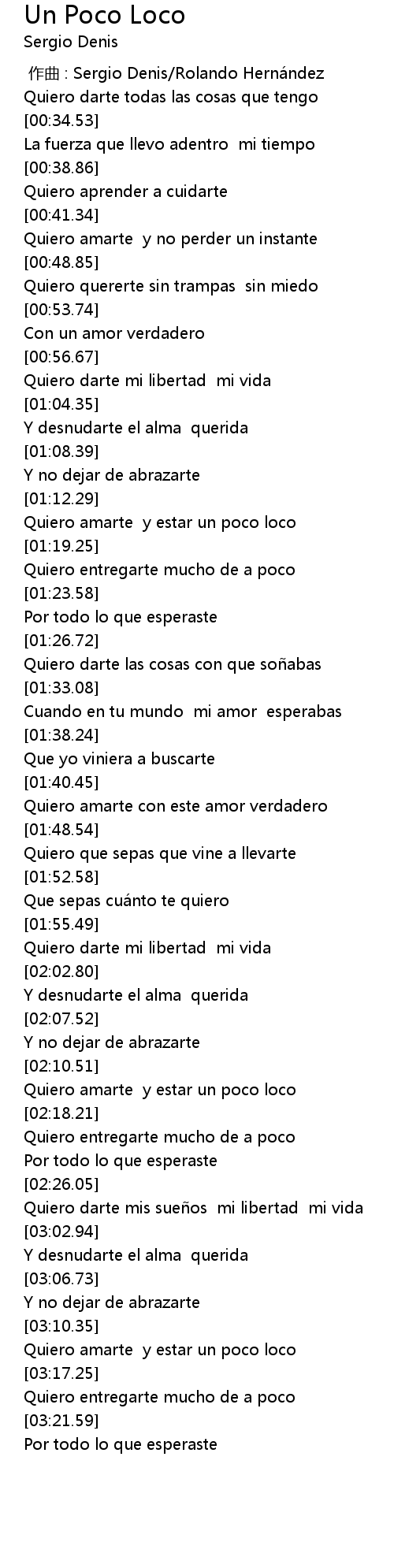 | [03:12.35] | Quiero amarte y estar un poco loco |