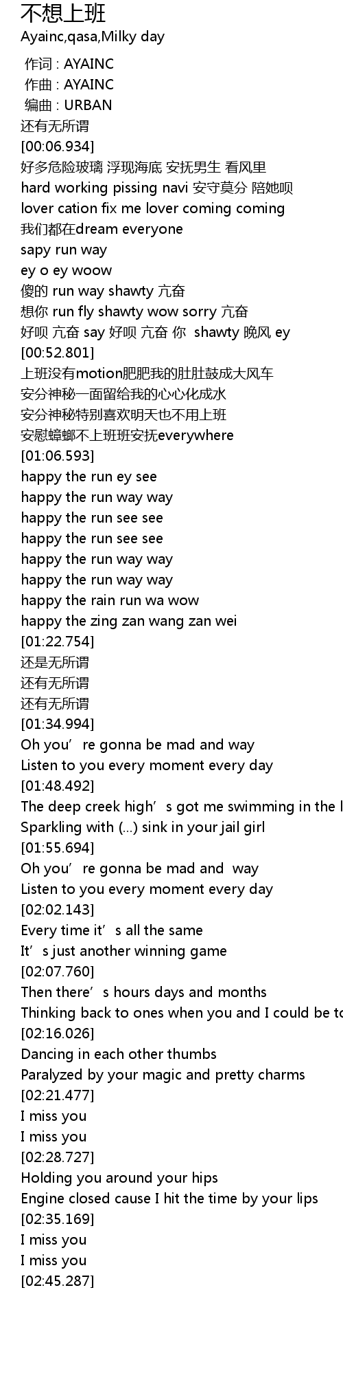 | [00:00.000] | zuo qu : AYAINC |