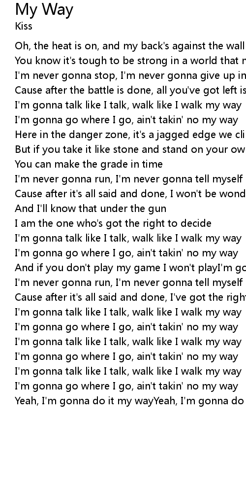 | I'm gonna talk like I talk, walk like I walk my way | |