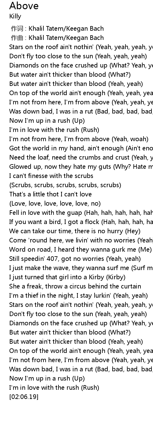 | [00:50.20] | I'm not from here, I'm from above (Yeah, woah) |
