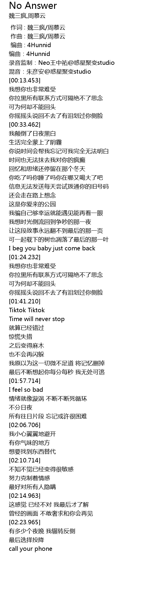 | [00:05.458] | 编曲:4Hunnid |