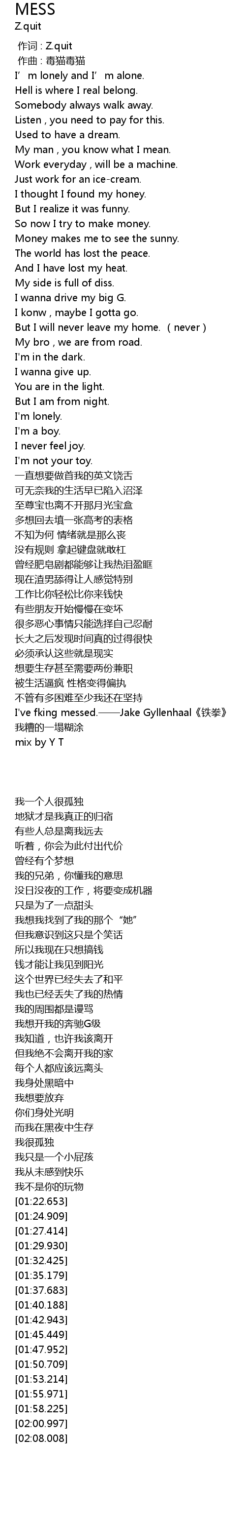 | [01:22.653] | 一直想要做首我的英文饶舌 |