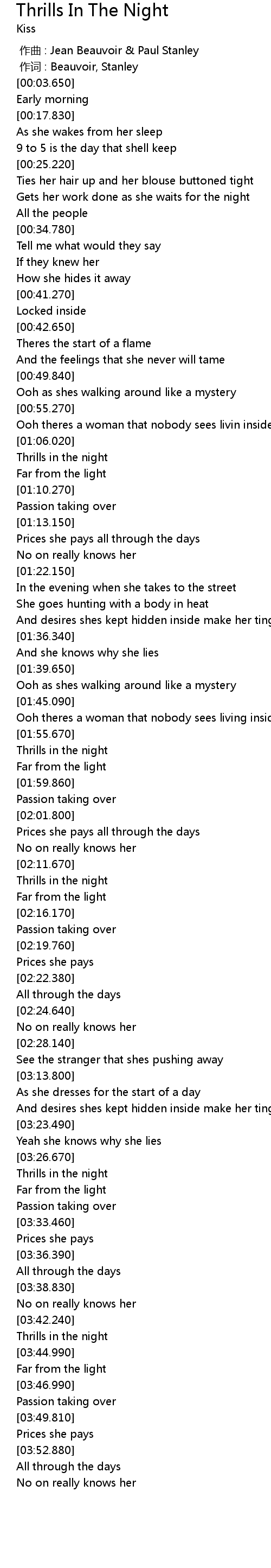 | [00:00.00] | zuo qu : Jean Beauvoir Paul Stanley |