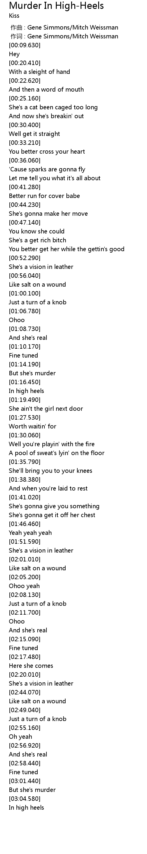 | [00:01.00] | 作词 : Gene Simmons/Mitch Weissman |