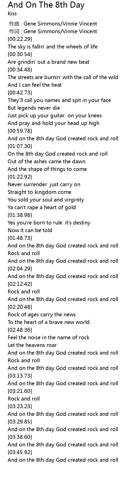 | [02:58.92] | And on the 8th day God created rock and roll |