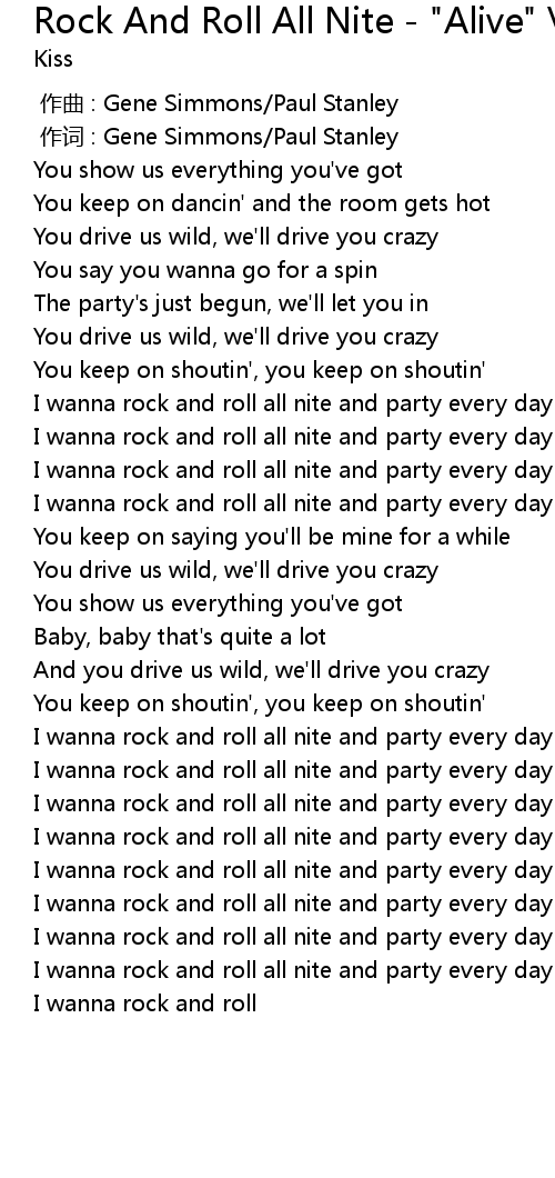 | [00:52.50] | I wanna rock and roll all nite and party every day |