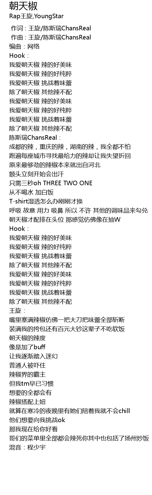| [00:41.57] | 除了朝天椒 其他辣不配 |