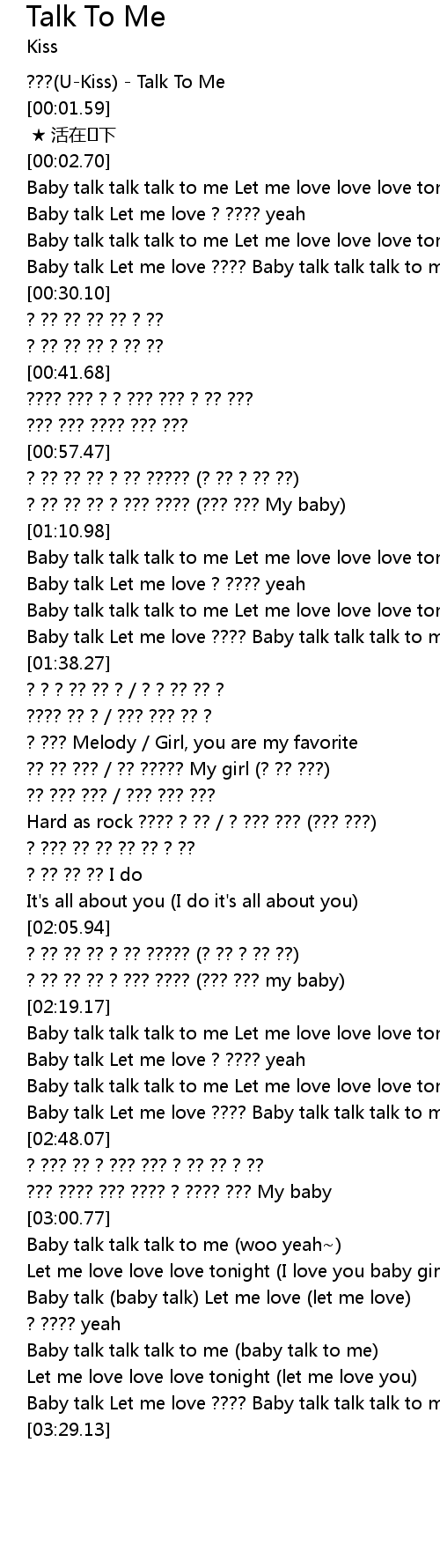| [01:31.42] | Baby talk Let me love ???? Baby talk talk talk to me |