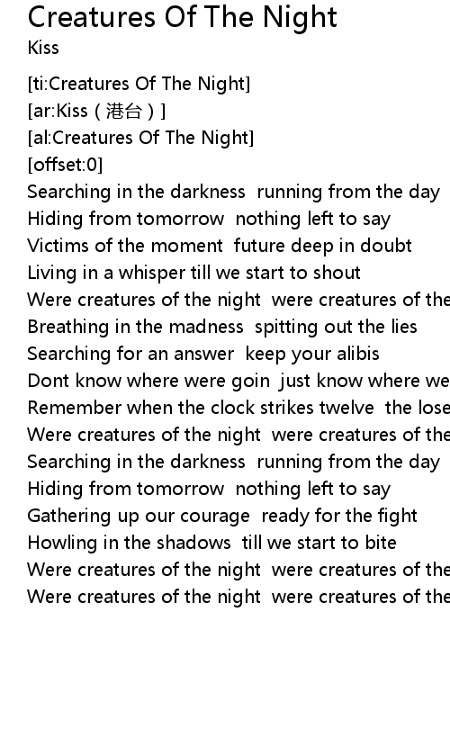 | [00:53.64] | Were creatures of the night were creatures of the night |
