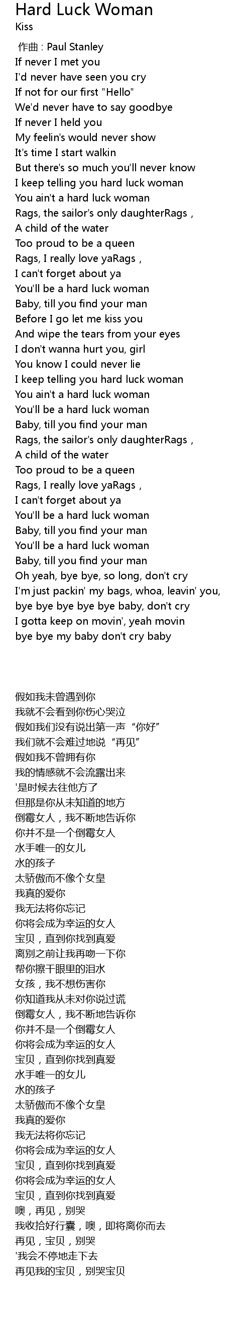 | [00:46.00] | I keep telling you hard luck woman |