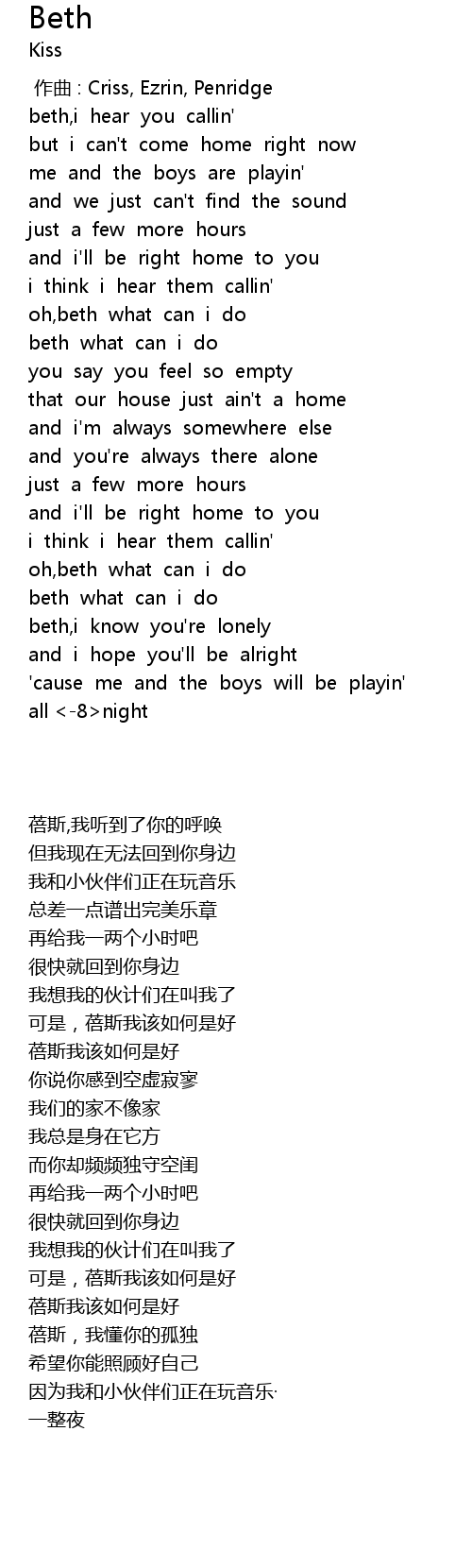 | [00:00.00] | 作曲 : Criss, Ezrin, Penridge |