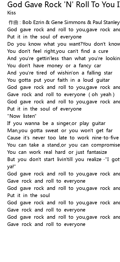 | [00:51.88] | God gave rock and roll to you,gave rock and roll to you |