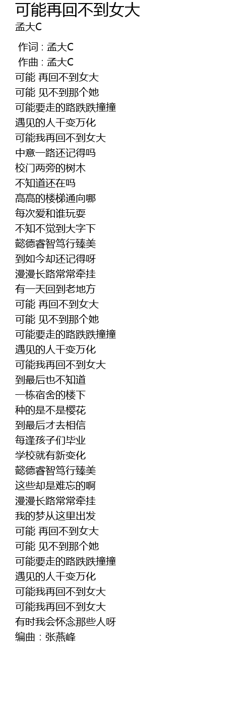 | [01:46.074] | kě néng zài huí bú dào nǚ dà |