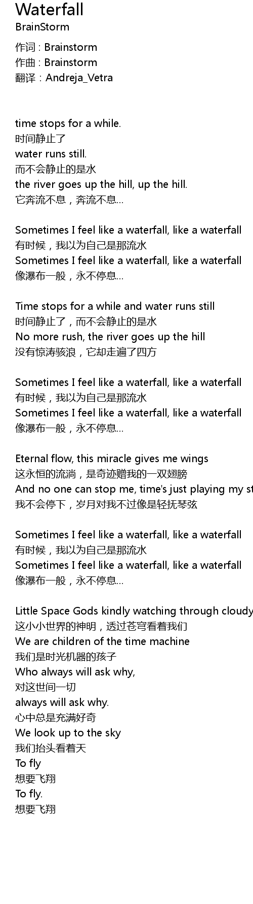 | Sometimes I feel like a waterfall, like a waterfall | |