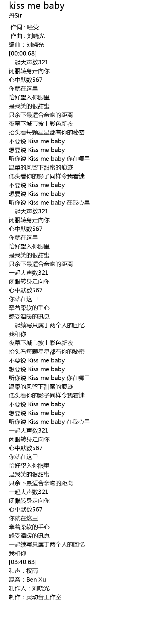 | [02:40.32] | bu yao shuo Kiss me baby |