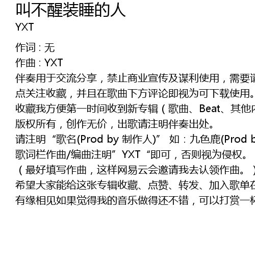 | 歌词栏作曲/编曲注明”YXT“即可,否则视为侵权。 | |