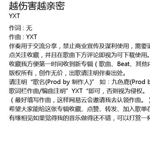 | 歌词栏作曲/编曲注明”YXT“即可,否则视为侵权。 | |