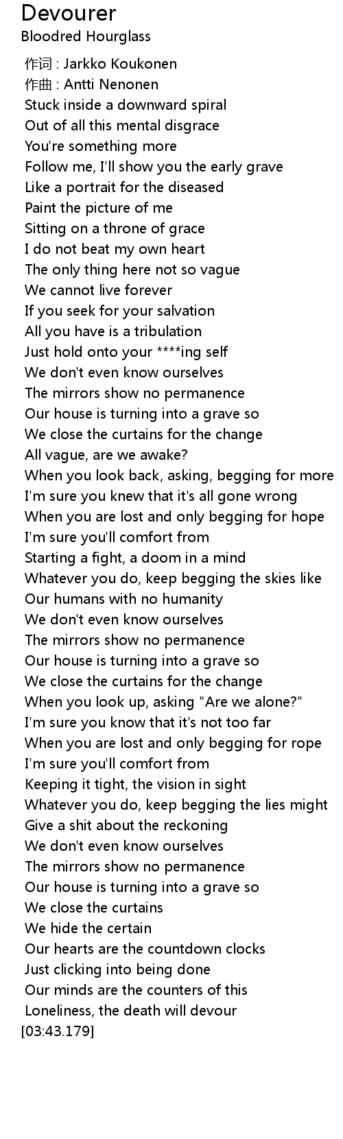 | [03:36.527] | Loneliness, the death will devour |