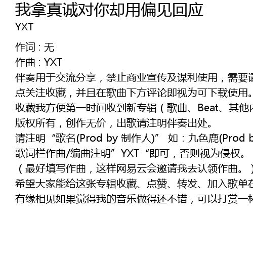 | 歌词栏作曲/编曲注明”YXT“即可,否则视为侵权。 | |
