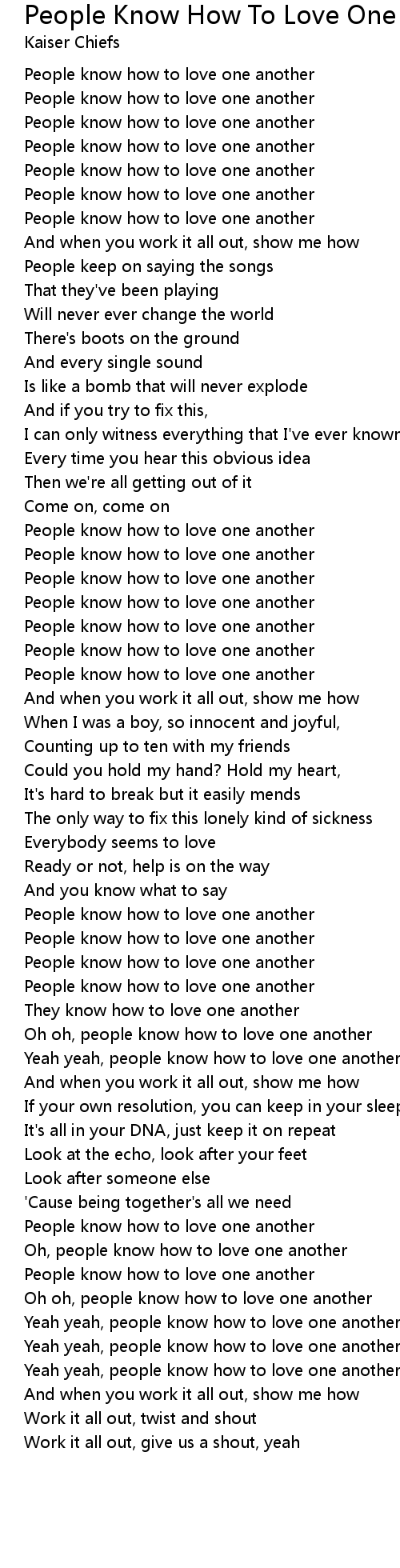 Oh, people know how to love one another |