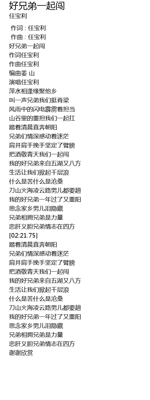 | [00:39.78] | 叫一声兄弟我们挺脊梁 |