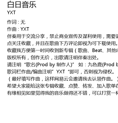 | 歌词栏作曲/编曲注明”YXT“即可,否则视为侵权。 | |
