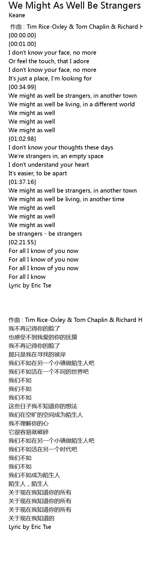 | [00:00.00] | 作曲 : Tim Rice-Oxley & Tom Chaplin & Richard Hughes |