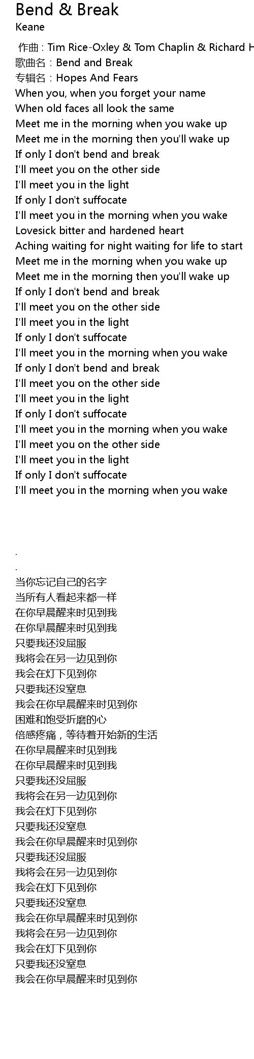| [01:47.64] | If only I don't bend and break |