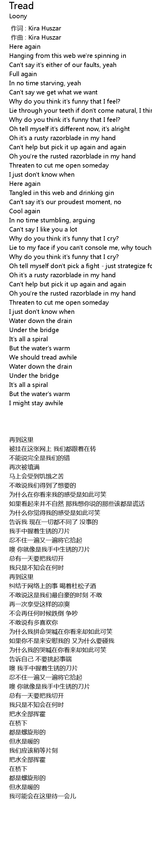 | [01:17.770] | Oh you' re the rusted razorblade in my hand |