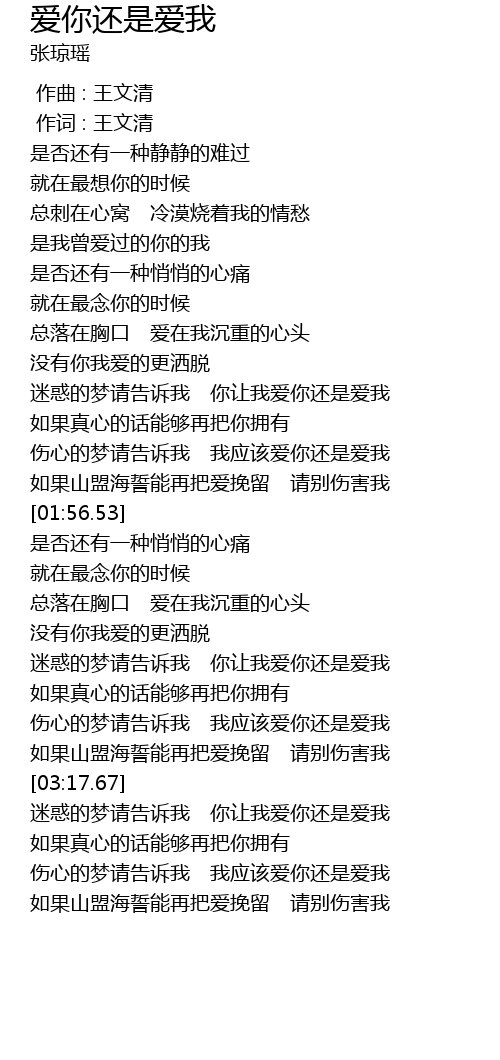 | [01:39.36] | shang xin de meng qing gao su wo wo ying gai ai ni hai shi ai wo |