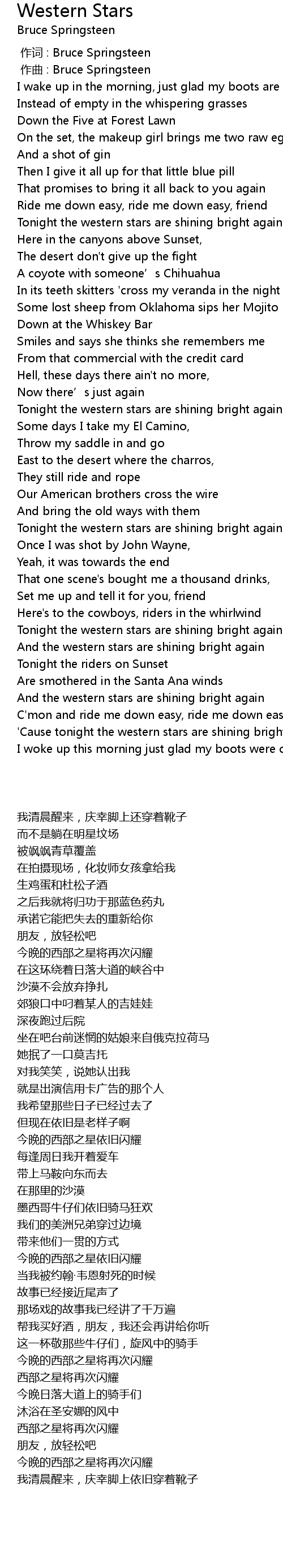 | [04:14.89] | 'Cause tonight the western stars are shining bright again |
