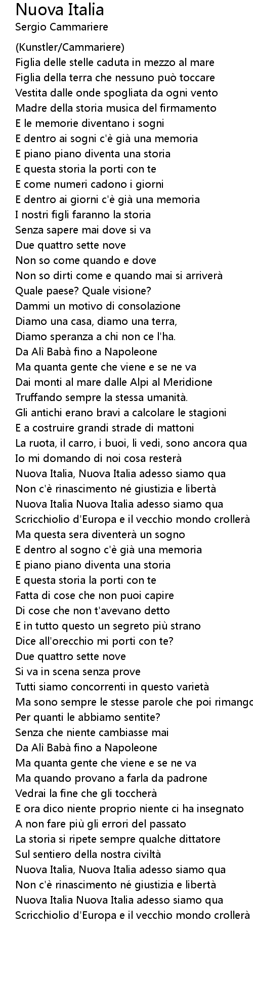 | Song | Nuova Italia |