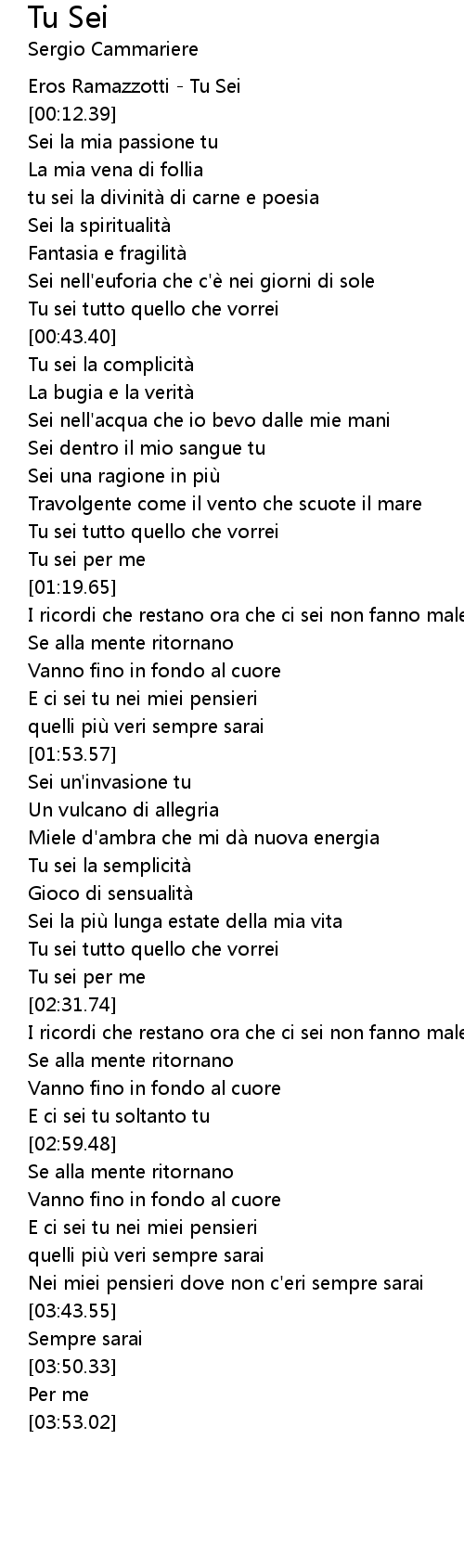| [00:00.00] | Eros Ramazzotti Tu Sei |