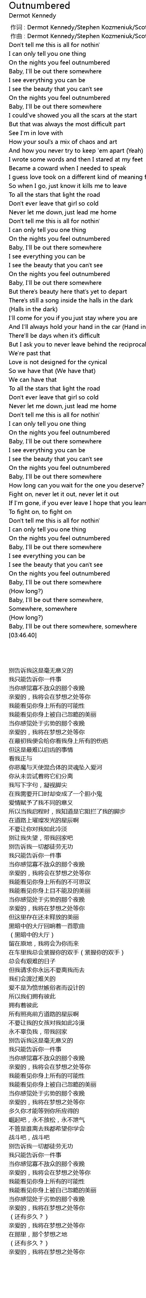 | [02:25.72] | On the nights you feel outnumbered |