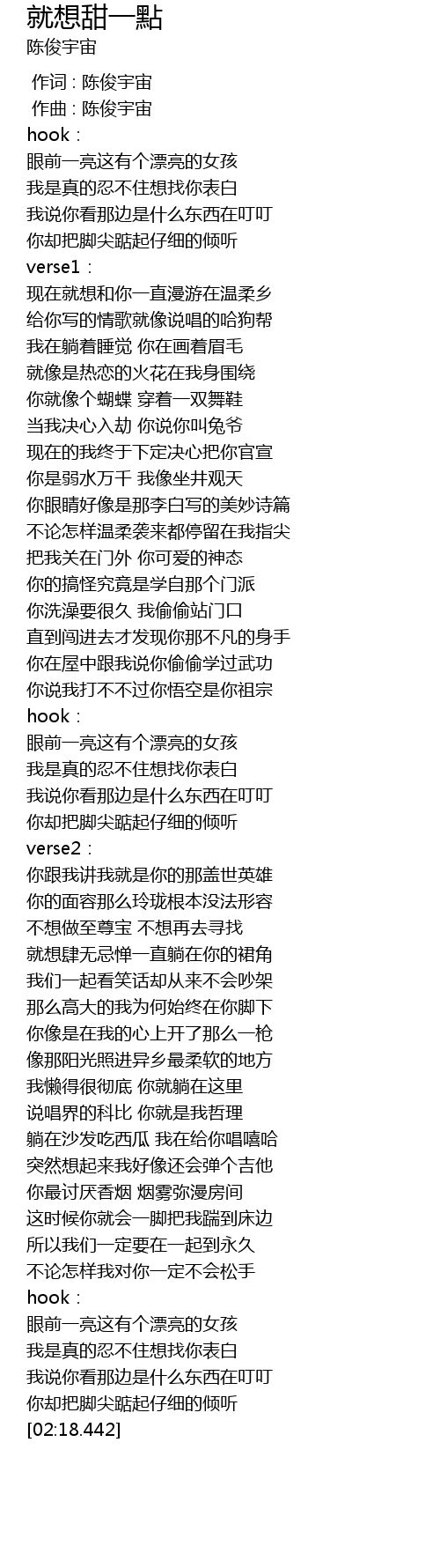 | [00:00.000] | 作词 : 陈俊宇宙 |