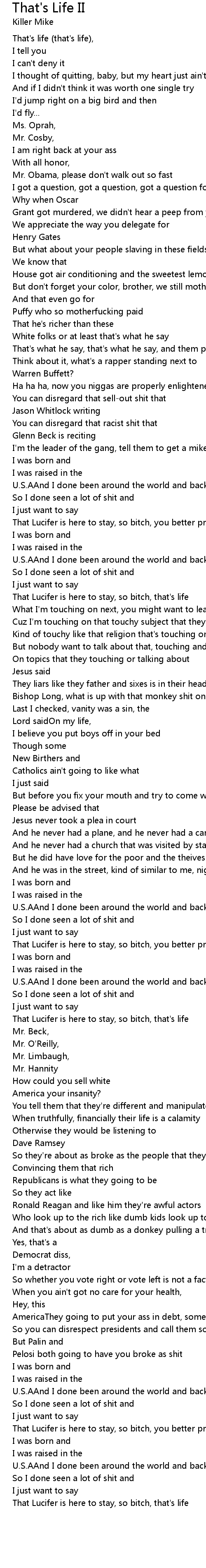 That's Life II Lyrics