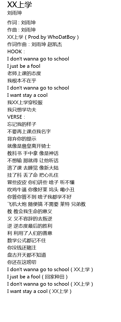 | 作词作曲:刘雨坤 赵凯杰 | |
