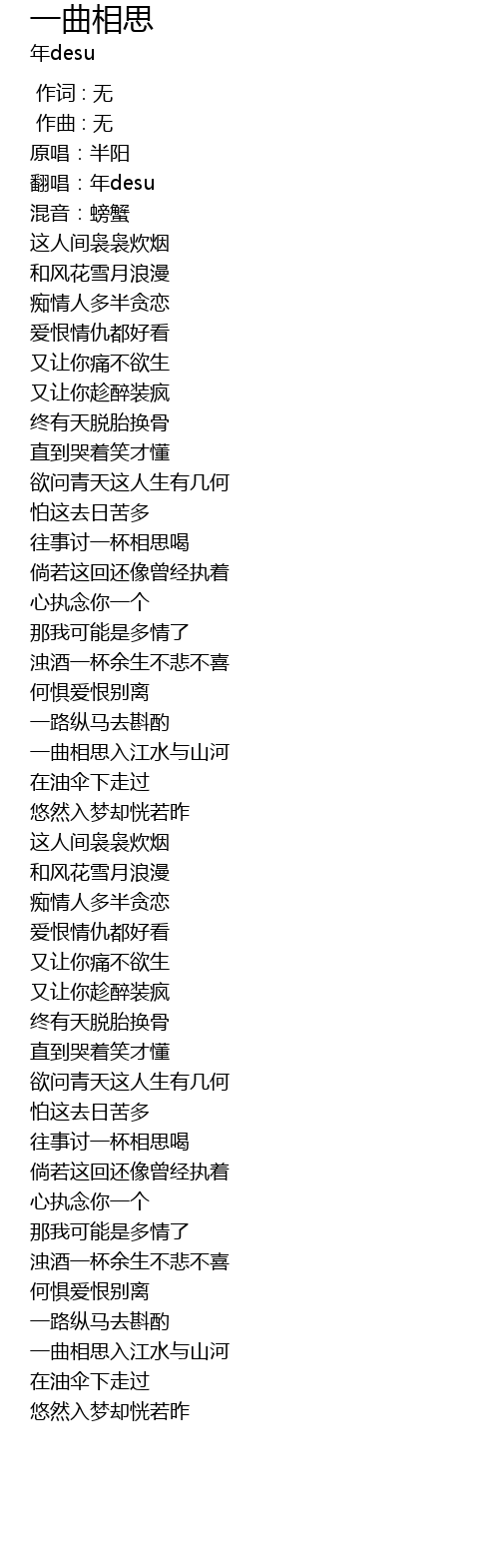 | [02:22.438] | yi qu xiang si ru jiang shui yu shan he |
