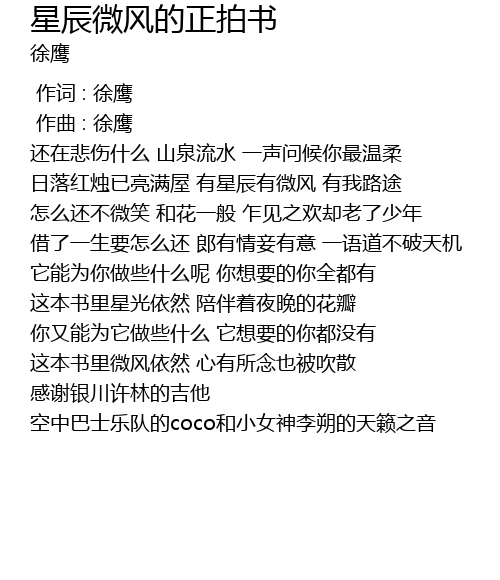 | [00:00.000] | 作词 : 徐鹰 |