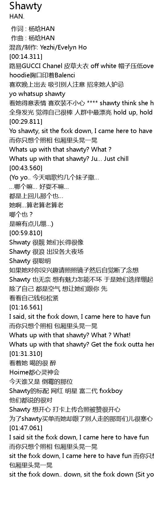 | [01:37.812] | Shawty的标配 网红 明星 富二代 fxxkboy |