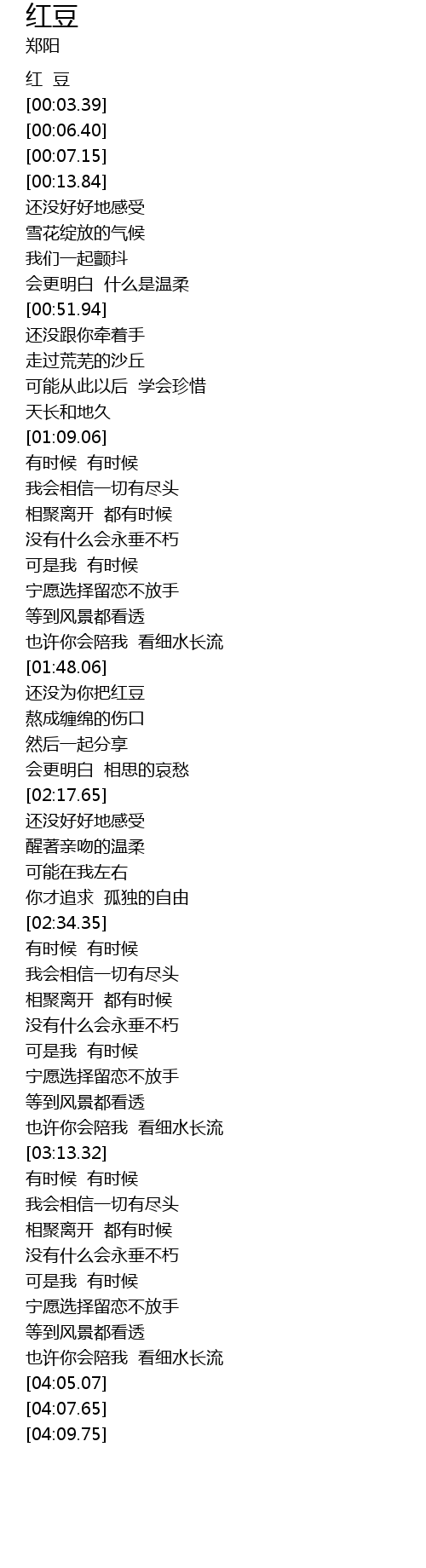 | [02:00.96] | hái méi wèi nǐ bǎ hóng dòu |