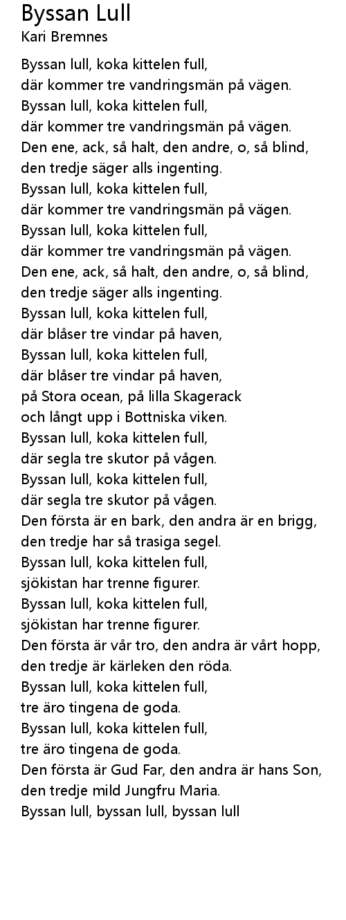 | [03:50.42] | Byssan lull, koka kittelen full, |