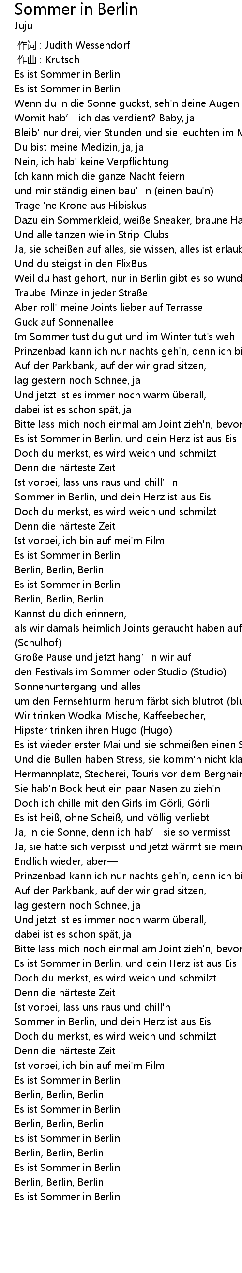 | [02:22.35] | Es ist Sommer in Berlin, und dein Herz ist aus Eis |