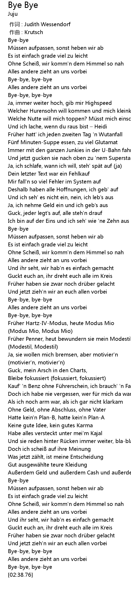 | [00:30.51] | Und ich lache, wenn du raus bist Heidi |