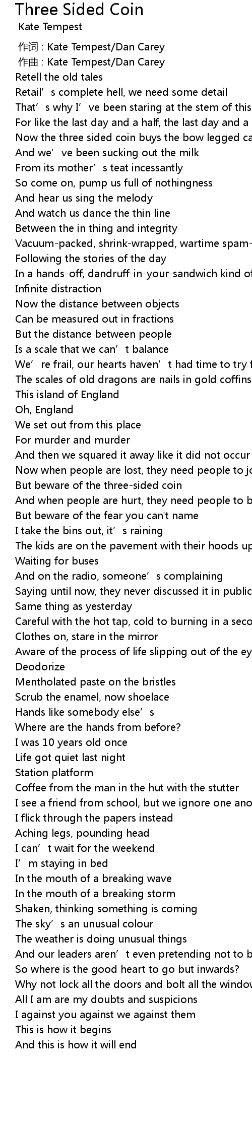 | [00:00.000] | 作词 : Kate Tempest/Dan Carey |